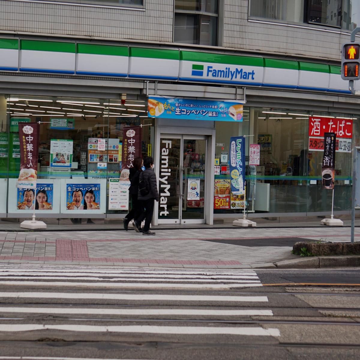 To tak zwane “konbini”, przeważnie otwarte 24/7. Termin “konbini” pochodzi od angielskiego “convienience store”. Na słupach pod szyldem sklepu zawsze jest informacja o sprzedaży alkoholu, papierosów, dostępności toalet, miejsc do spożywania posiłków czy bankomatów. W większości można kupić alkohol(酒) i papierosy(たばこ), nieco mniej posiada bankomaty(ATM). W niektórych dostępne są miejsca do zjedzenia zakupionych posiłków, w tym zupek instant.