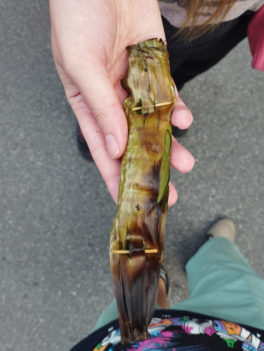 Słodki ryż zawinięty w liść. To widzieliśmy tylko na Sunday Night Market. Jedno za ok 10-20THB.