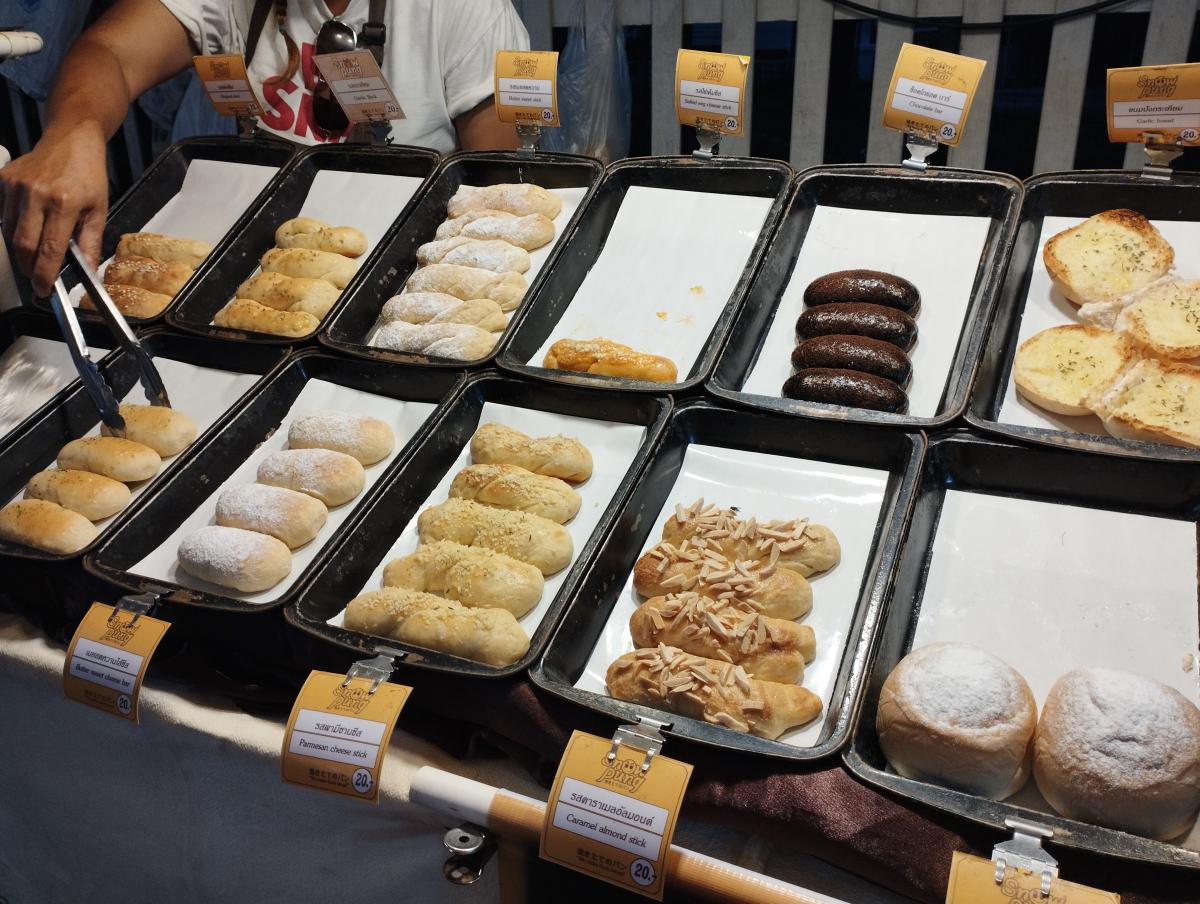 Jedna bułeczka kosztuje ok 20 THB i po zakupie pracownicy je odgrzewają w mikrofalówce. Były to jedne z najpyszniejszych wypieków jakie jedliśmy w życiu. Na szczególną uwagę zasługują bułeczki z pianką marshmallow.