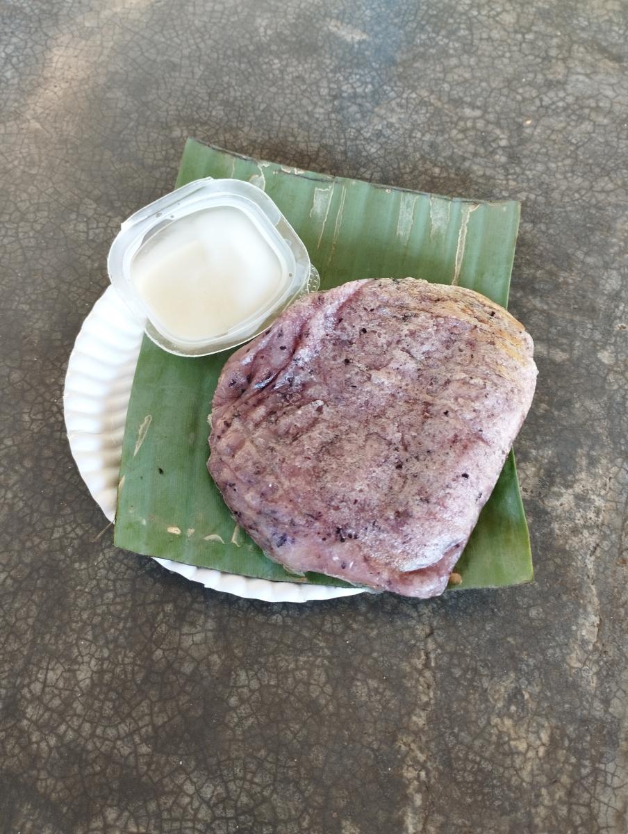 Bardzo mało znany deser. Udało nam się go kupić przy punkcie widokowym Samoeng. Jest to „kotlet” z kleistego ryżu podawany z mlekiem skondensowanym. Wygląda trochę jak schabowy.