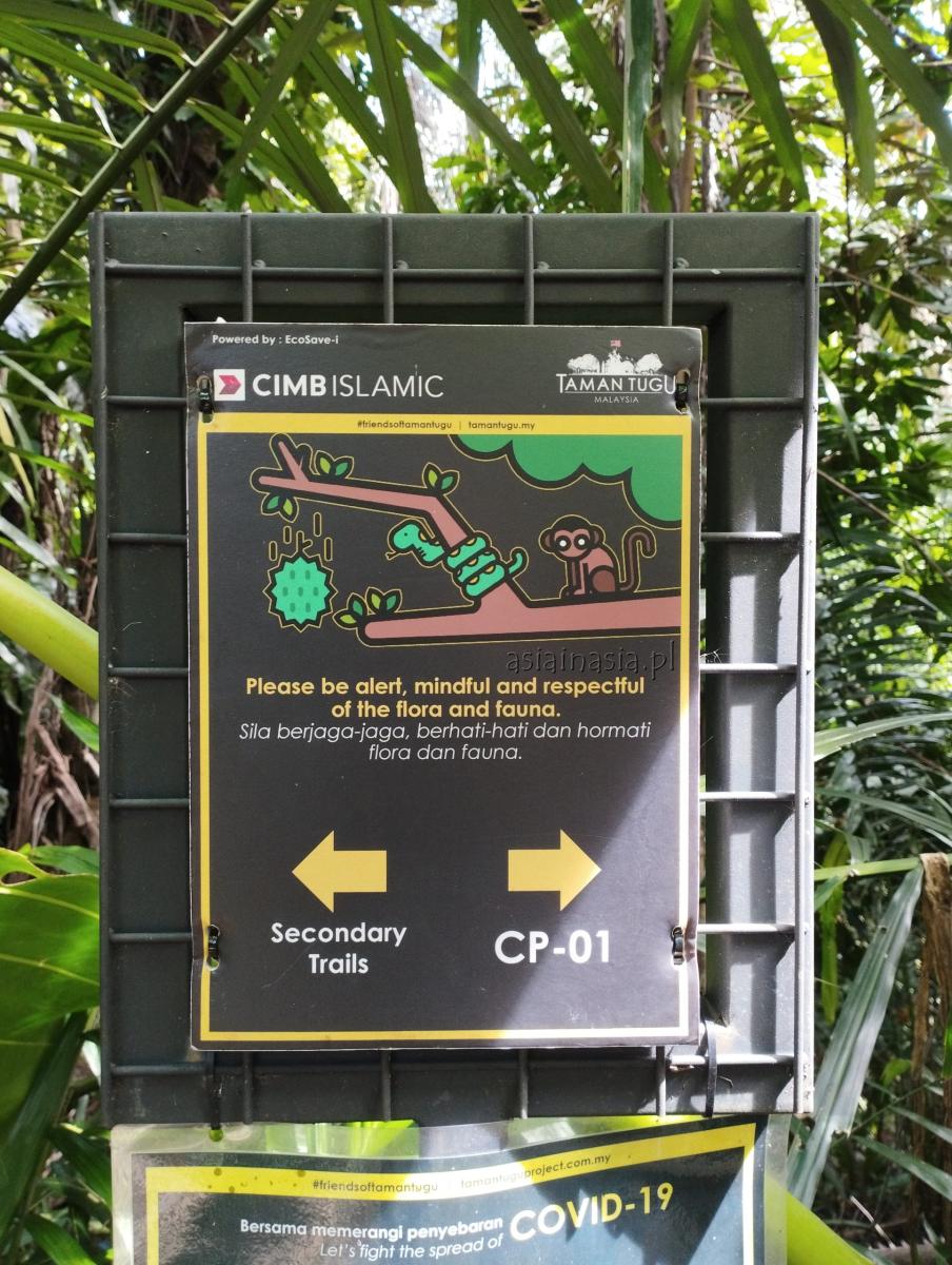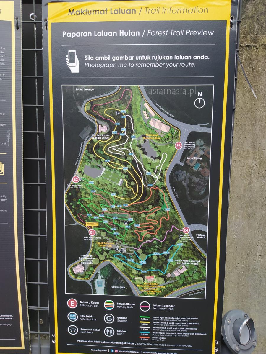 W całym parku znajduje się 30 checkpointów (CP) dzięki którym możemy się zorientować gdzie jesteśmy. Przy niektórych znajdują się też altanki, ławki, czy huśtawki. Przy niewielkim szczęściu można spotkać tam obsługę parku, która w razie czego wskaże nam drogę i zapewni bezpieczeństwo. Mimo, że park nie jest duży i mimo oznaczeń można się tam zgubić. Gęsta dżungla sprawia, że wszystkie ścieżki wyglądają tak samo i zasłania możliwe punkty orientacyjne jak np. Petronas Towers. My podczas spaceru spotkaliśmy zagubionego malezyjczyka i pomogliśmy mu znaleźć wyjście, a on w podzięce kupił nam napoje i uciekł do samochodu zanim zdążyliśmy zaprotestować.