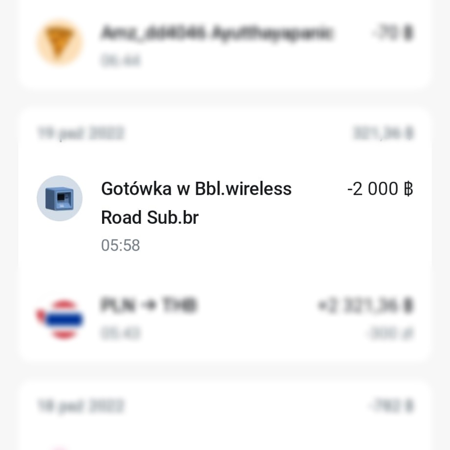 Mając kartę i paszport należy iść do oddziału Bangkok Banku i poprosić o wypłatę gotówki. My byliśmy miedzy innymi w oddziale blisko Sukhumvit road. Wzięliśmy bilecik i grzecznie czekaliśmy na naszą kolej. Po krótkiej chwili podeszła do nas pani z obsługi i zapytała po angielsku czego potrzebujemy.  Pokazaliśmy jej kartę płatniczą Revolut i powiedzieliśmy, ze chcemy “withdraw money”. Zawahała się i wskazała na bankomat na zewnątrz, na co my wytłumaczyliśmy, ze bankomat ma “ withdrawal fee”. Najpierw dała nam do zrozumienia, że to o co prosimy jest niemożliwe, ale po kilku minutach wróciła do nas i zaprosiła do okienka. Sama procedura wypłaty zajęła dłuższą chwilę, wymagała zrobienia ksera paszportu, wielu podpisów, ale dostaliśmy w gotowce dokładnie tyle, ile zniknęło z konta Revolut. W międzyczasie również podkreślała, że bank opłaty nie pobierze, ale nasza karta może pobrać opłatę za przewalutowanie i wypłatę gotówki za granicą. My w podroży używamy głównie Revoluta, który pozwala na wypłacenie pieniędzy bez prowizji do pewnego limitu (800 zł w wersji standard).